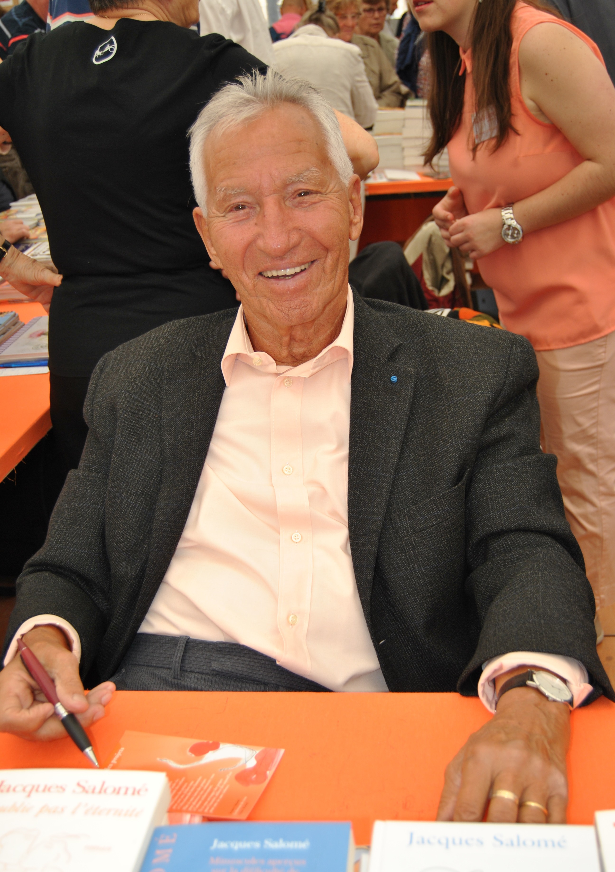 Notre photographe de choc en profite ensuite pour faire une photo de Jacques Salomé, que personnellement je ne connais pas, mais qui est l’idole des institutrices (oui je sais on dit professeurs des écoles maintenant… oui je sais qu’il y a aussi des garçons instits’…) pour tous ses livres sur la psychologie infantile. Donc une petite dédicace à vous mesdames ! Pour les autres, un petit lien Wikipédia, ça ne fait pas de mal 😉