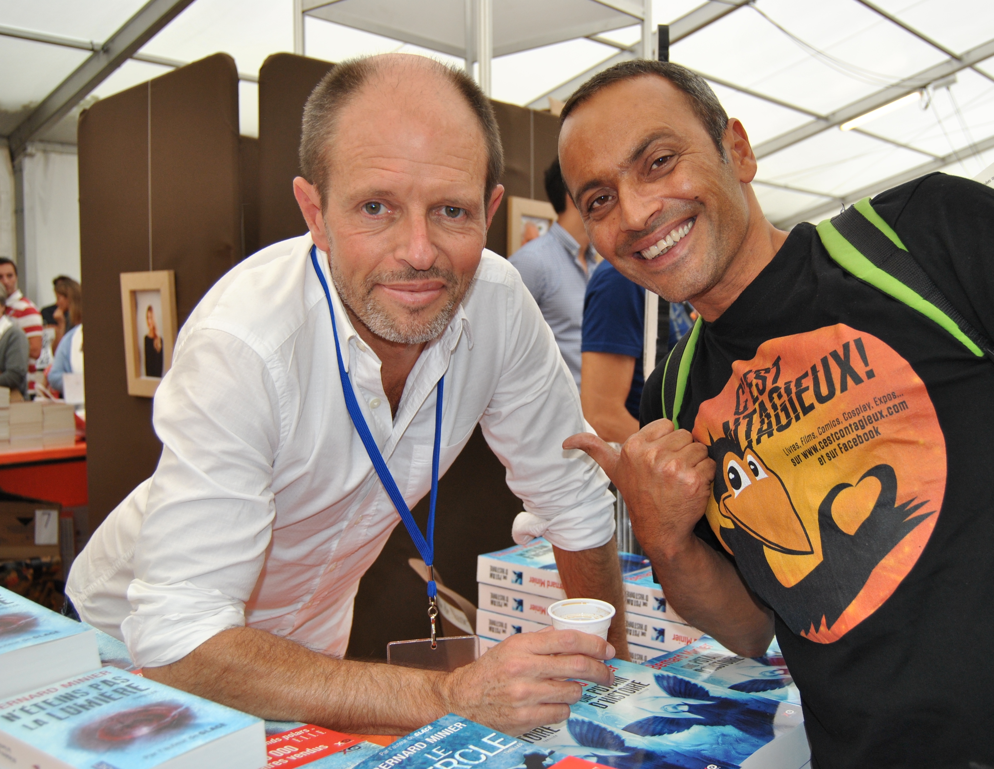 Il n’y a pas de salons réussis sans Bernard Minier. Un peu comme les soirées de l’Ambassadeur avec les « Ferrero Rochers » (espace publicitaire à louer messieurs les annonceurs ^^) . Nancy voulant être sûr de réussir le sien (de salon), Bernard a été un des rares auteurs de polar du salon à y être invité. C’est un peu normal au vu du succès grandissant du garçon, traduit dans près de 15 langues (chapeau !) ; un succès d’édition qui ne se dément pas et s’amplifie à chaque nouveau roman. La qualité, ça paie. L’auteur allie talent et gentillesse, la formule gagnante. Bernard en a profité pour nous lâcher quelques scoops mais motus, pour l’instant on n’en parle pas ! Mais stay tuned !